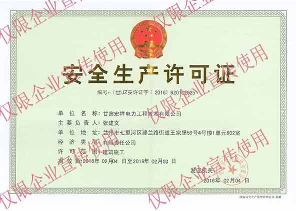 熱列慶祝我公司取得國家能源局甘肅監管辦公室頒發的電力行業承裝(修、試)電力設施許可證